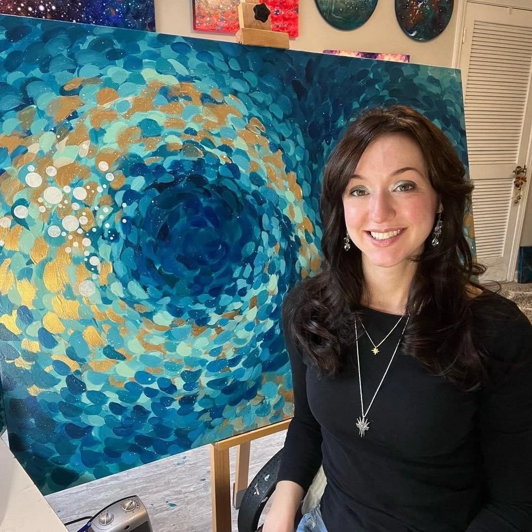 She began her career as an artist over twenty years ago, when she completed her BFA at the The School of Visual Arts in New York City (2005). During her time living and working in New York, Olivia mastered a variety of mediums, including pastels, oils, acrylics, and mixed media. Olivia has an expansive portfolio of art pieces that are fluid and technically driven. She uses bold colors in broad brush strokes through loose color transitions and carefully painted light orbs that dance and trickle around her canvas of color. Olivia enjoys intermingling a love of intricate color studies inspired by nature, trees, the sky and beyond.